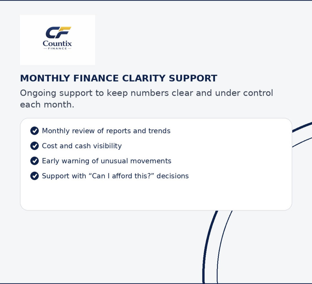 Help owners feel more in control as the business grows.Get in touchBased in London, United Kingdom, Countix Finance supports business owners globally through remote, independent finance insight.If the numbers don’t feel clear, don’t guess.